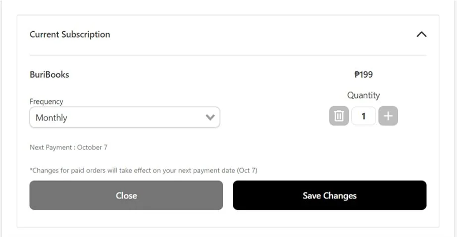 Reminder: Besides modifying your payment method, frequency, and cancellation of your chosen subscription, you must NOT initiate another subscription.
